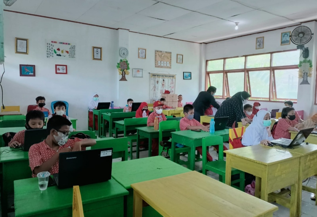 BN Online, Makassar–Hari Pertama simulasi Asesmen Nasional Berbasis Komputer (ANBK) 2021, UPT SPF SD Inpres Toddopuli 1 yang berlokasi di Jl. Jati Kecamatan Panakkukang Kota Makassar, dengan mematuhi protokol kesehatan, Senin (18/10/2021).