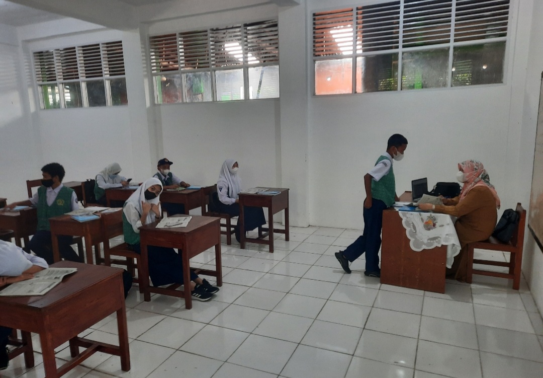 Kaswadi S.Pd menambahkan dalam PTM terbatas kali ini, kami mensyaratkan siswa yang bisa mengikuti PTM terbatas , yang sudah mendapatkan izin dari orang tuanya, dan tentunya siswa yang sudah melakukan vaksinasi.