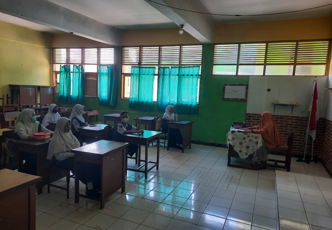 “Dimana dalam PTM terbatas kali ini, kami membagi 2 sesi setiap hari untuk masing-masing tingkatan. Hari Senin, Kamis, kelas 7, hari Selasa, Jumat kelas 8, dan hari Rabu, Sabtu kelas 9,” bebernya.