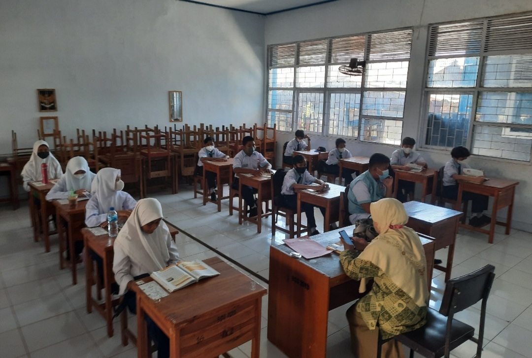 “Jadi siswa tidak berangkat setiap hari, karena masih PTM terbatas sehingga kapasitasnya maksimal 50 persen. Selain sapras penunjang prokes, kami juga telah menyediakan ruang isolasi di ruang UKS. Dari hasil pantauan kami sejak tadi pagi, Alhamdulillah tidak dijumpai peserta didik kami yang bermasalah dengan kondisi kesehatannya,” papar Ismail.
