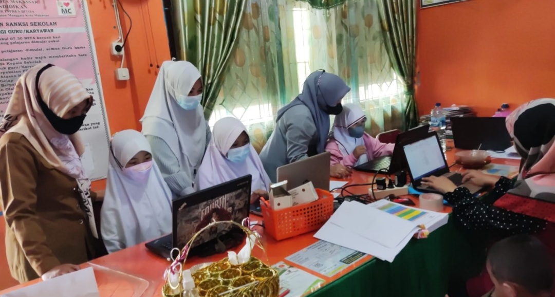 BN Online, Makassar–Hari Pertama simulasi Asesmen Nasional Berbasis Komputer (ANBK) 2021, UPT SPF SD Inpres Bitoa yang berlokasi di Kecamatan Manggala Kota Makassar, dengan mematuhi protokol kesehatan, Senin (18/10/2021).