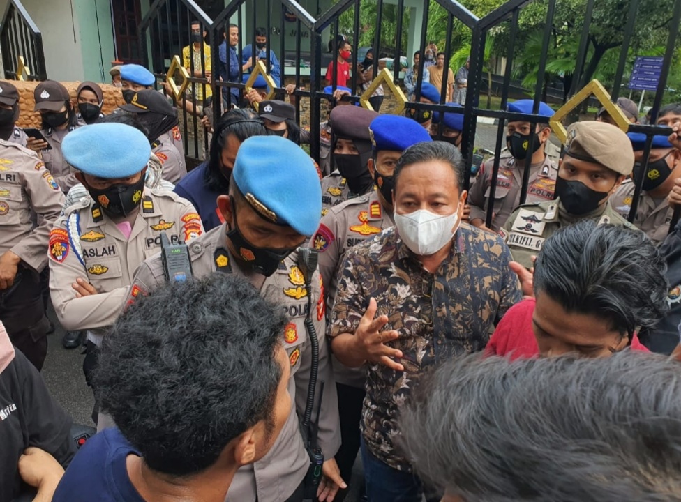 Menanggapi hal tersebut, Plt. Sekretaris DPRD Makassar Dahyal yang didampingi pihak kepolisian, satpol pp dan staff aspirasi Humas menerima aspirasi demonstran dengan berada diantara Mahasiswa di luar gedung kantor DPRD Makassar.
