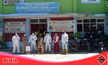 Dinas Pendidikan Gelar Penyemprotan Disinfektan 5 Sekolah Ditunjuk Percontohan PTM Kecamatan Ujung Tanah Makassar!!