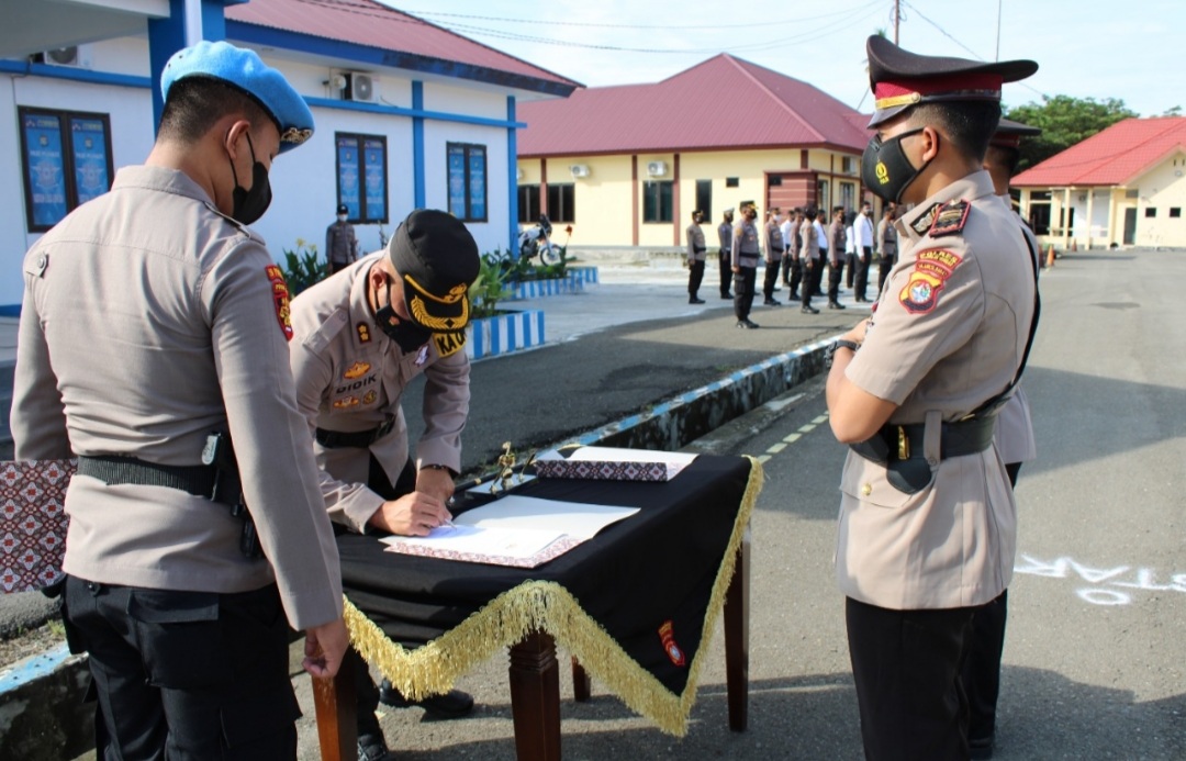 BN Online, Pasangkayu–Kapolres Pasangkayu AKBP Didik Subiyakto S.H memimpin langsung upacara serah terima jabatan Kasat Lantas Polres Pasangkayu, yang dilaksanakan di Lapangan Apel Corona Polres Pasangkayu, Selasa (2/11/21).