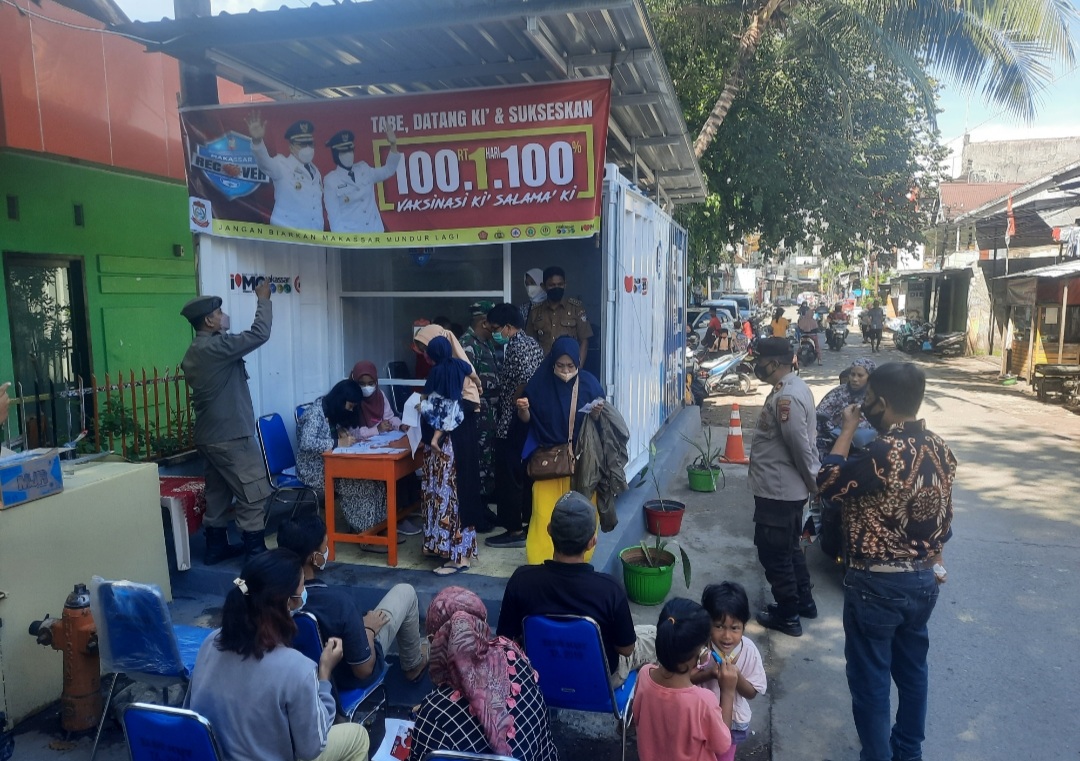 BN Online, Makassar–Pelaksanaan serbuan vaksinasi 100 RT Satu Hari 100 Persen yang berjalan di masing-masing Kelurahan se-kecamatan Ujung Tanah sudah mulai terlaksana, sebanyak ratusan Vaksin BioNTech Pfizer ditujukan untuk melindungi dari Covid-19 disiapkan untuk warga Kecamatan Ujung Tanah.