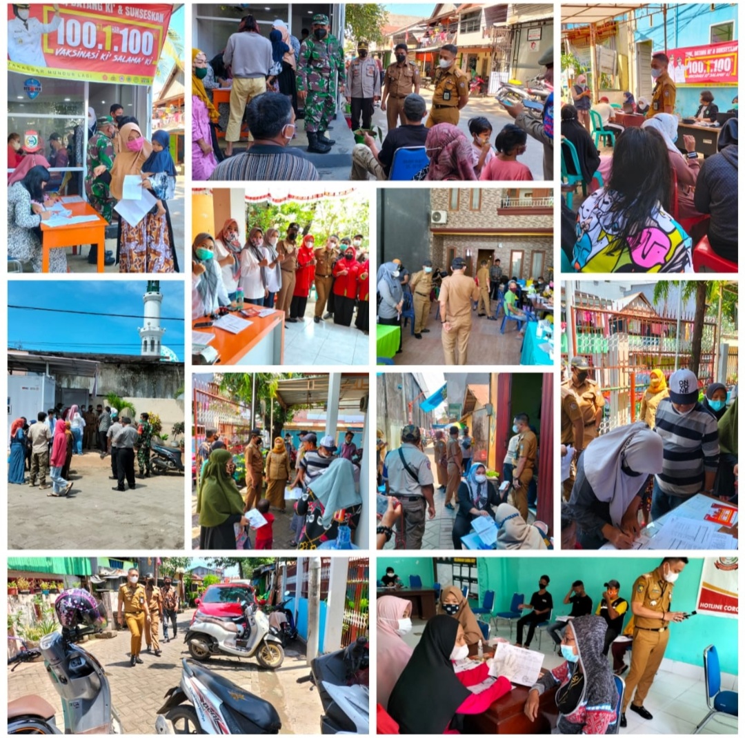 Memantau jalannya program vaksinasi 100 RT Satu Hari 100 Persen untuk para warga Kelurahan Kelurahan Ujung Tanah, Pattingalloang Baru, Pattingalloang, Totaka, Tabaringan, Cambayya, Camba Berua, Tamalabba, dan Gusung.