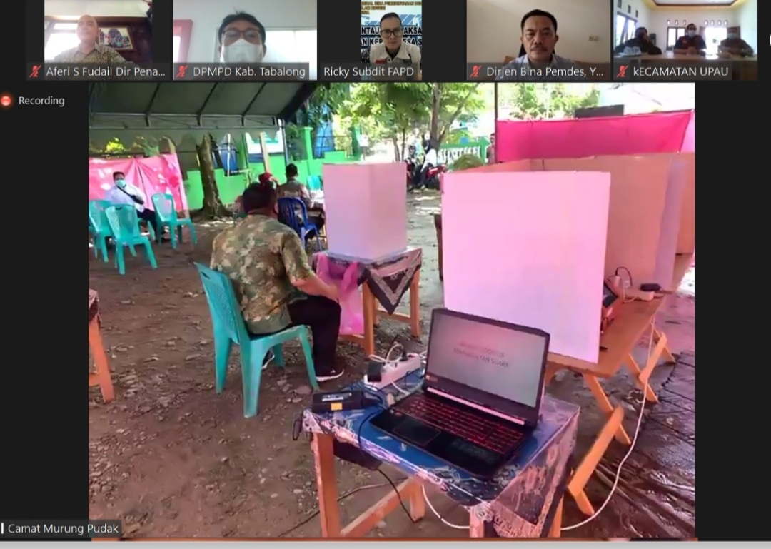 BN Online, Jakarta – Pemerintah Daerah Kabupaten Tabalong, Provinsi Kalimantan Selatan, menggelar Pemilihan Kepala Desa (Pilkades) Serentak 2021 pada 64 desa, 3 desa diantaranya menggunakan metode elektronik voting (e-voting). Hal ini diketahui saat Direktur Jenderal (Dirjen) Bina Pemerintahan Desa (Pemdes) Kementerian Dalam Negeri (Kemendagri) Yusharto Huntoyungo memantau pelaksanaan pilkades tersebut secara virtual, Sabtu (6/11/2021).