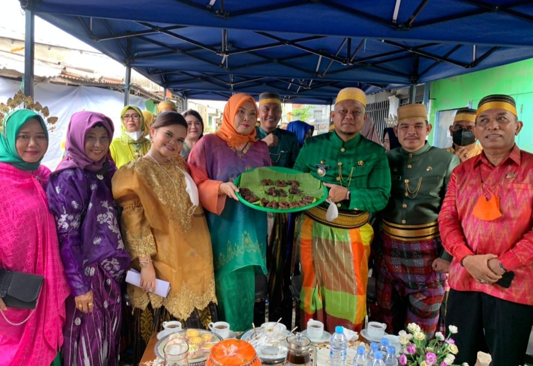 BN Online, Makassar–Dalam rangka peringatan hari jadi Kota Makassar ke 414 tahun, Camat Tamalate bersama Ketua TP-PKK Tamalate, Sekcam dan Lurah ngopi dan makan kue taripang bersama warga di lorong wisata kelurahan bongaya.