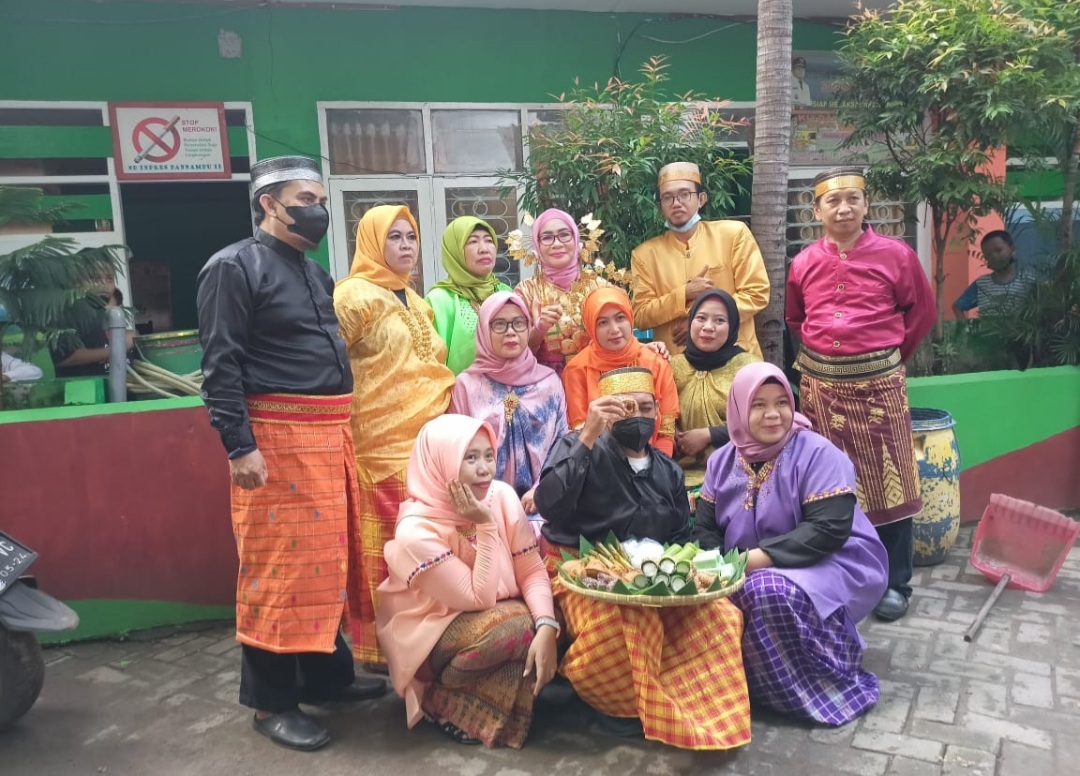 UPT SPF SD Inpres Pannampu II Kec. Tallo Kota Makassar. Kompak mengenakan baju adat di halaman sekolah, Selasa (9/11/2021).
