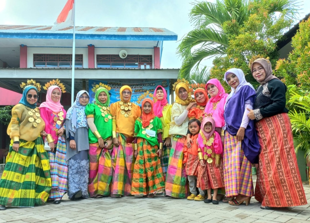 Sambungnya, seperti kita lihat bersama bahwa guru kompak kenakan busana adat, demi kenyamanan tetap ikuti imbauan pemerintah salah satunya dengan memakai masker dan mematuhi protokol kesehatan Covid-19.