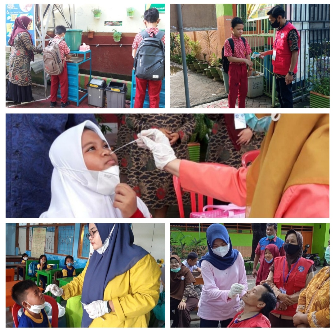 “Sebelum mengikuti proses pembelajaran tatap muka para siswa mengikuti prosedur yaitu swab antigen. Di hari Kamis, siswa kelas 5 dan 6, di hari Jumat kelas 3 dan 4 di hari Sabtu kelas 1 dan 2, dua sesi.Tiap kelas dibagi 2 ada 5 rombel, kelas 6, sip pagi dari jam 07.30 s/d 08.30 dan kelas 5 sip siang dari jam 09.00 sd10.00,” paparnya.