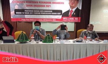 “Kegiatan sosialisasi Peraturan Perundang-undangan Tahun Anggaran 2021 membahas tentang Peraturan Daerah Kota Makassar No.10 Tahun 2011 tentang pengelolaan rumah kost, bertujuan untuk memberikan pemahaman terhadap warga kota Makassar agar dapat memahami dan mengerti tentang Perda tersebut.” kata William.