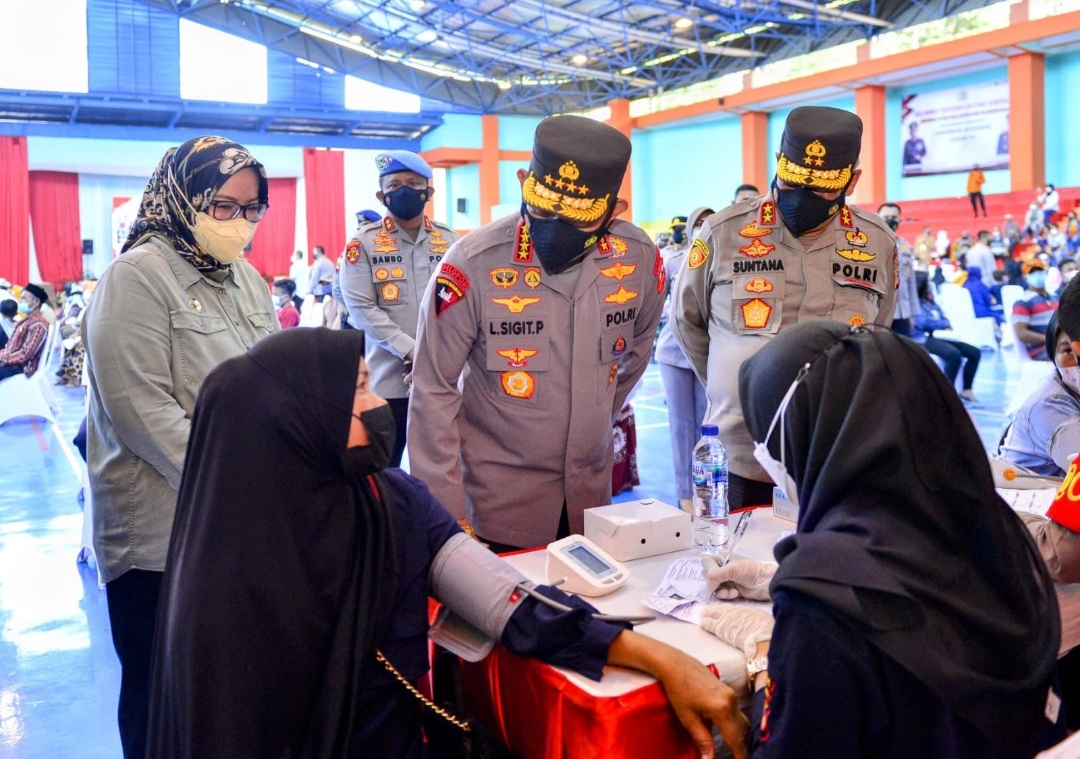 Tak lupa, Sigit menyampaikan apresiasi kepada seluruh jajaran TNI-Polri, tenaga kesehatan, Pemda, Forkopimda, vaksinator, relawan dan unsur masyarakat lainnya yang terus berusaha melakukan akselerasi vaksinasi meskipun di hari libur seperti saat ini.