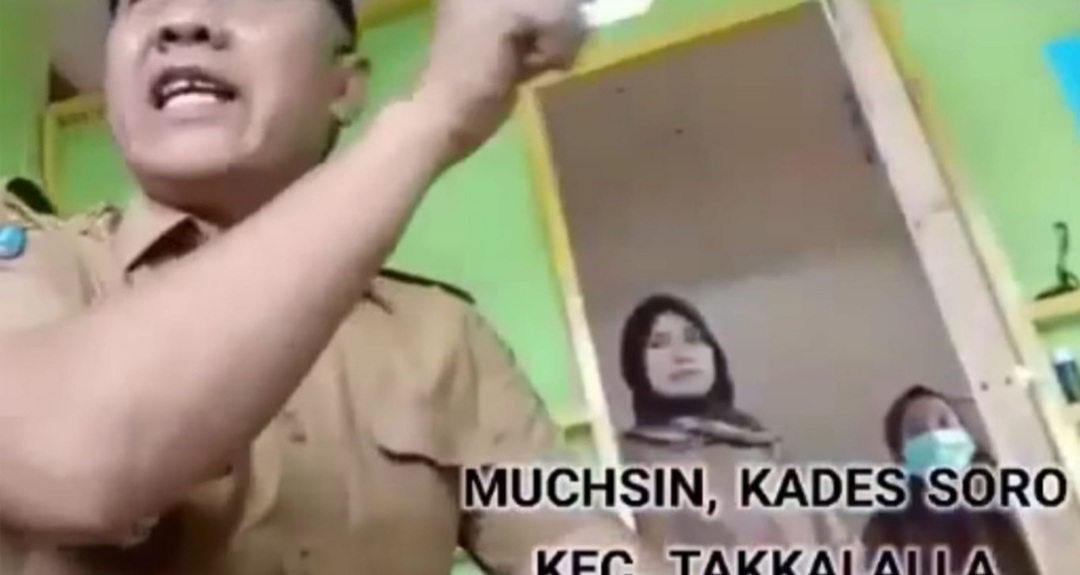Dalam video berdurasi 0.44 detik itu, tampak sang kades memaki-maki seorang stafnya, staf itu seorang perempuan.