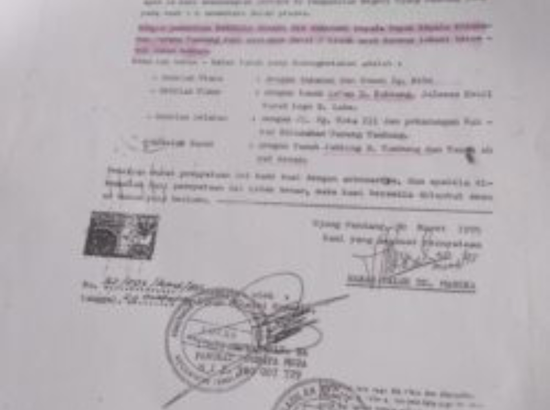 “Saya mewakili ahli waris membuat surat pernyataan untuk menghibahkan sebagian tanah kepada Pemkot Makassar(Kelurahan Parangtambung) tanggal 30 Maret 1995 dengan nomor Register 32/593/KMS/1995. Surat tersebut diketahui Lurah Maccini Sombala (kelurahan induk) Idris Mapasaile,BA,” ungkap Daeng Mangka.