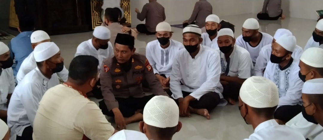BN Online, Sidrap—Kabag Ops Polres Sidrap,AKP Nasri S.Sos berikan pencerahan tausiyah pada sejumlah siswa Latja SPN Batua Usai lakukan shalat Jumat bersama secara berjamaah di Masjid Al Ikhlas Polres Sidrap.Jumat,3/12/2021.