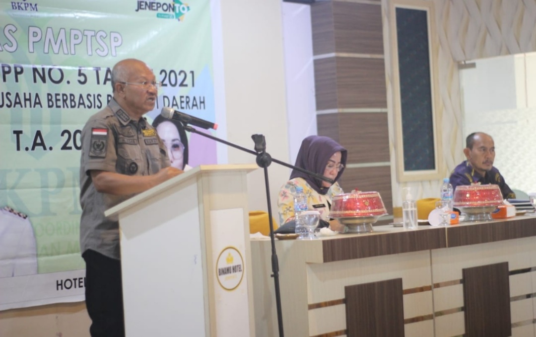 Sosialisasi yang diinisiasi oleh Dinas Penanaman Modal dan Pelayanan Terpadu Satu Pintu (DPMPTSP) tersebut berlangsung dengan protokol kesehatan Covid-19 di Hotel Binamu jalan Anggrek Jeneponto, Kamis (23/12/2021).