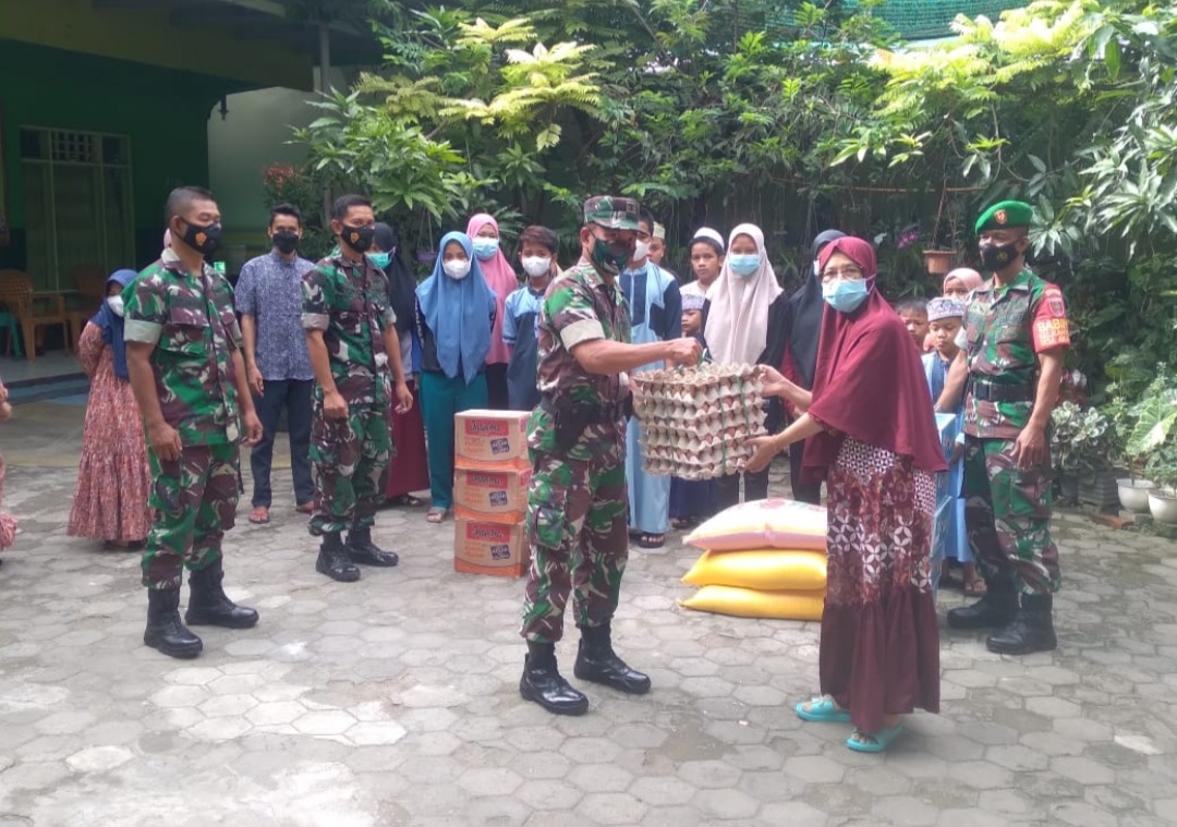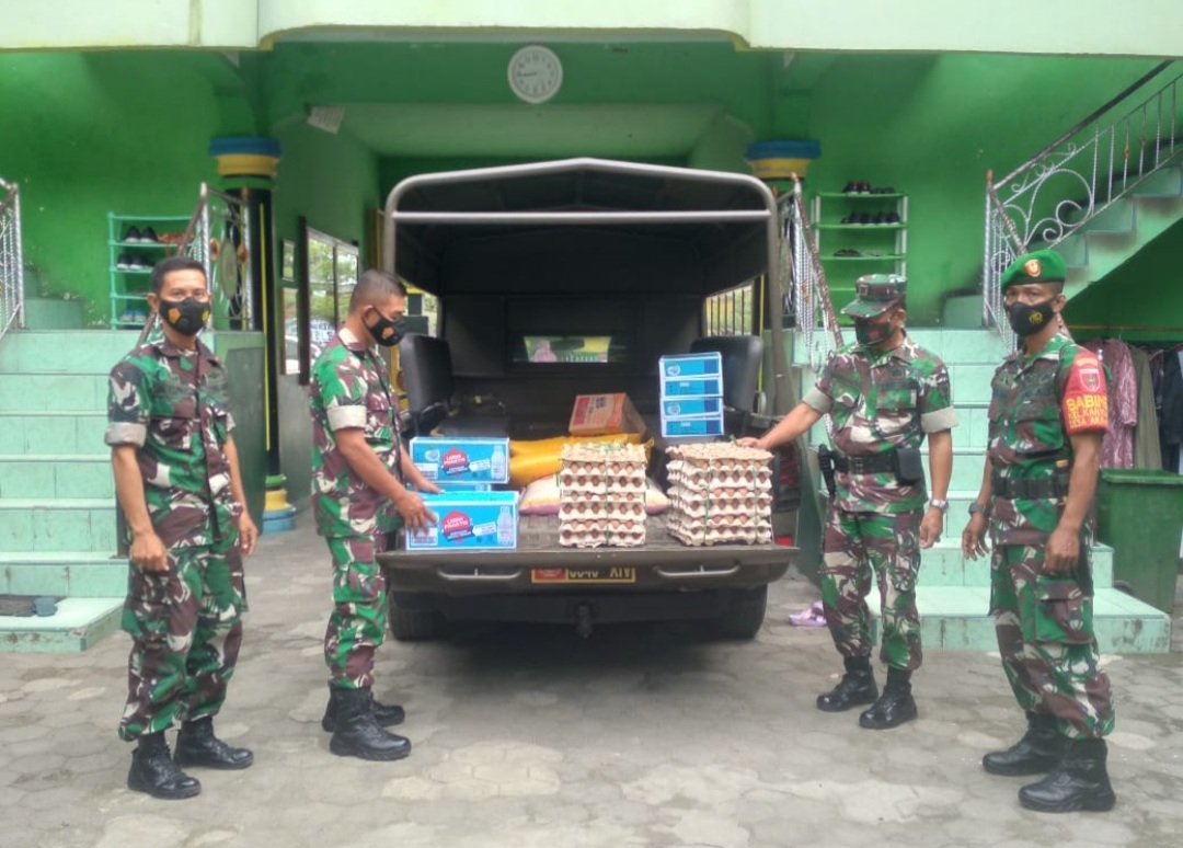 Kegiatan yang digelar tersebut dilaksanakan dengan memberikan bantuan berupa sembako berupa Beras, Telur, Mie Instan dan Air Mineral dan diserahkan oleh Danramil 1420-03, Letda Inf Jumadi kepada Ketua Panti Asuhan Sejahtera Aisiyah, Hj. Rosdiana Azis, S.Ag.