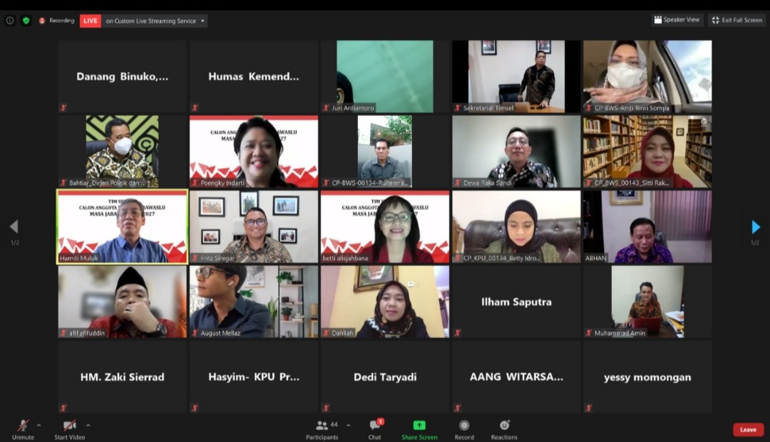 Guna kelancaran tahapan tersebut, Tim Seleksi (Timsel) menggelar sosialisasi teknis tes kesehatan dan tes wawancara secara virtual, Jumat (24/12/2021). Sosialisasi itu dihadiri oleh para peserta calon anggota KPU dan Bawaslu yang melaju pada tahap selanjutnya.