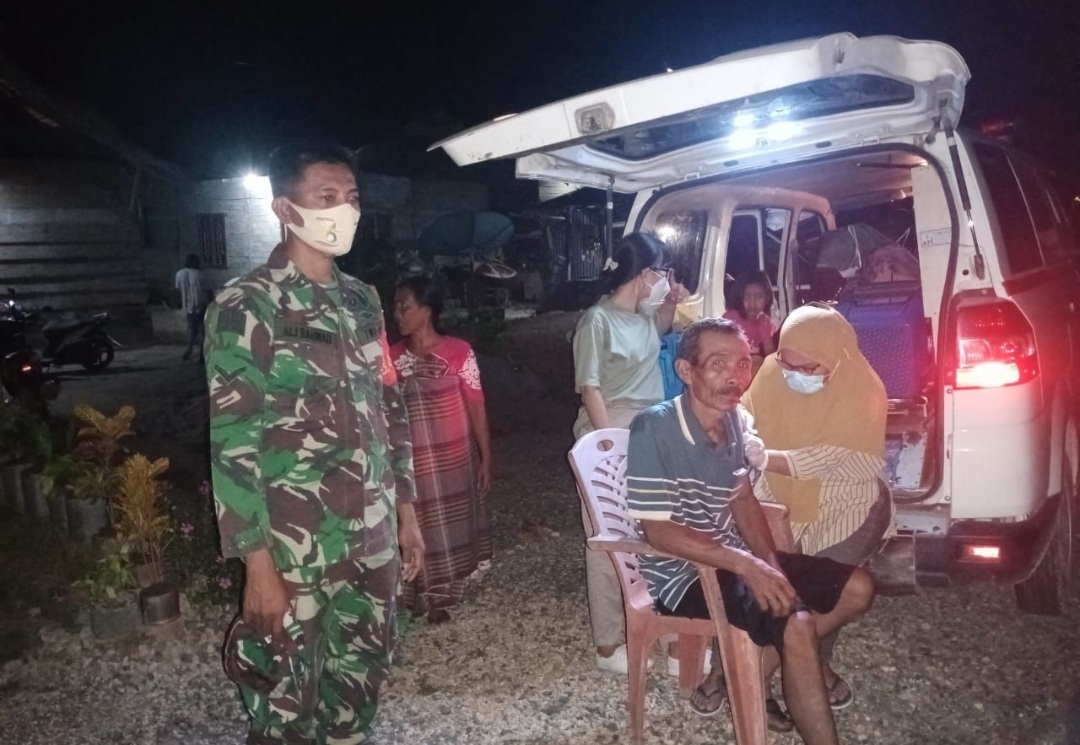 BN Online, Pasangkayu-‘Demi suksesnya vaksinasi Covid-19 agar daya imun tubuh masyarakat Kabupaten dapat meningkat, Jajaran personil Kodim 1427/Pasangkayu (Pky) door to door Kerumah warga. Kali ini sasaran tim vaksinasi menyisir warga Dusun Majene dan Dusun Kayumampu, Desa Kasano, Kecamatan Baras, Kabupaten Pasangkayu, Provinsi Sulbar, untuk melaksanakan vaksinasi tahap satu (1) dan 2, Rabu malam (29/12-2021).