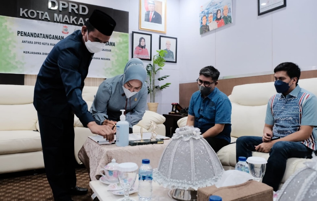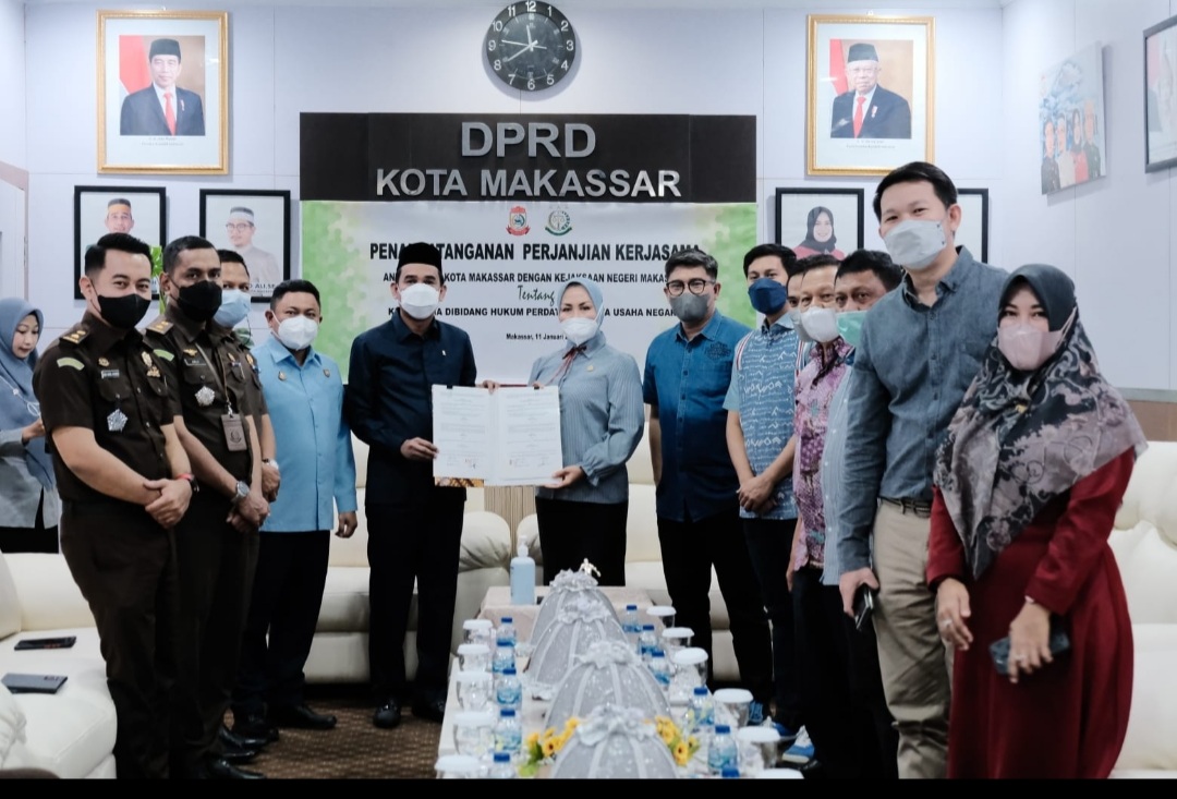 BN Online, Makassar–DPRD Makassar melakukan Penandatangan Kerjasama dengan Kejaksaan Negeri Makassar dalam bidang Hukum Perdata dan Tata Usaha Negara, di Kantor DPRD Makassar, Jl. A.P. Pettarani, Selasa (11/01/2021).