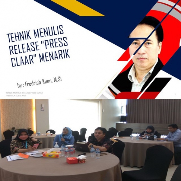 Instruktur tunggal dari pihak eksternal, Fredrich yang juga instruktur nasional dan penguji kompetensi wartawan serta mantan General Manager (GM) Perum LKBN ANTARA itu menguraikan secara komprehensif dibarengi praktek pola kekinian 15 menit paham dalam “Teknik Menulis Release ‘Press Claar’ Menarik” yang diikuti secara antusias karena terukur melalui praktek praktis yang dilakukan semua peserta.