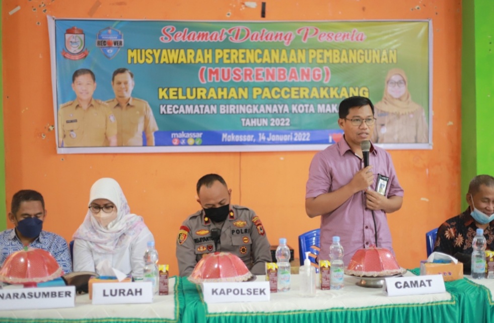“Hari ini adalah merupakan kegiatan strategis kita di Kelurahan Paccerakkang untuk kita mengusulkan kembali wilayah-wilayah mana yang akan kita usulkan. Tetapi usulan tersebut harus betul-betul prioritas, dihadapan kita hadir beberapa OPD yang akan kita dengar penyampaiannya sebentar .