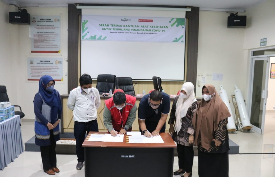 Proses penyerahan bantuan hibah yang disalurkan melalui yayasan Mercy corps Indonesia tersebut disaksikan oleh Kepala Dinas Kesehatan Makassar dr. Nur Saidah, Plan Manager PT Cargill Indonesia Munawir AM, Program Manager Yayasan Mercy Corps Indonesia Iswar Abidin serta sejumlah pejabat dan staf RSUD kota Makassar.