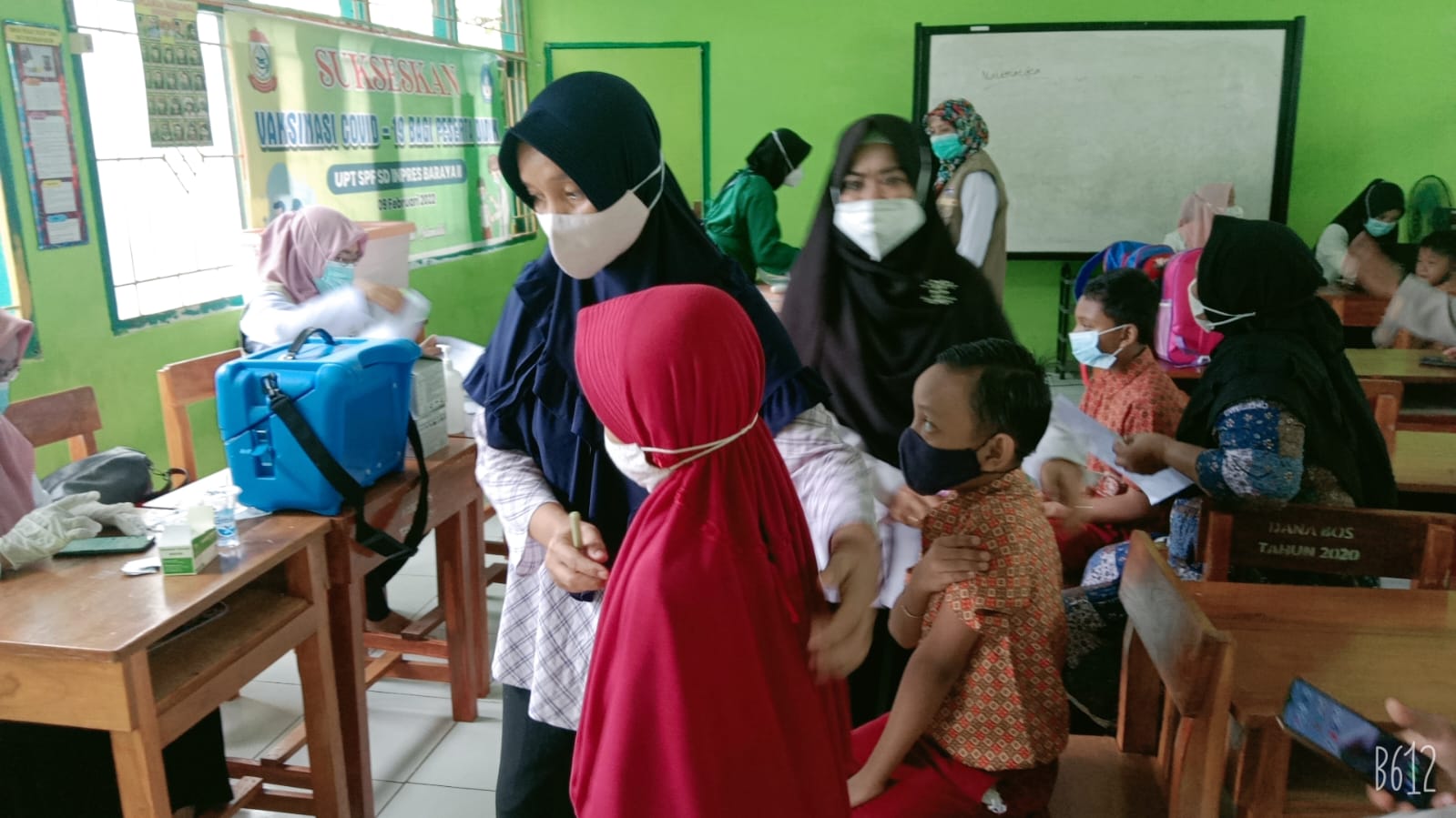 Kegiatan vaksinasi ini, dilaksanakan selama dua hari pertama vaksinasi ini diikuti siswa kelas 1 2 dan 3 dan hari kedua untuk siswa kelas 4 5 dan 6.