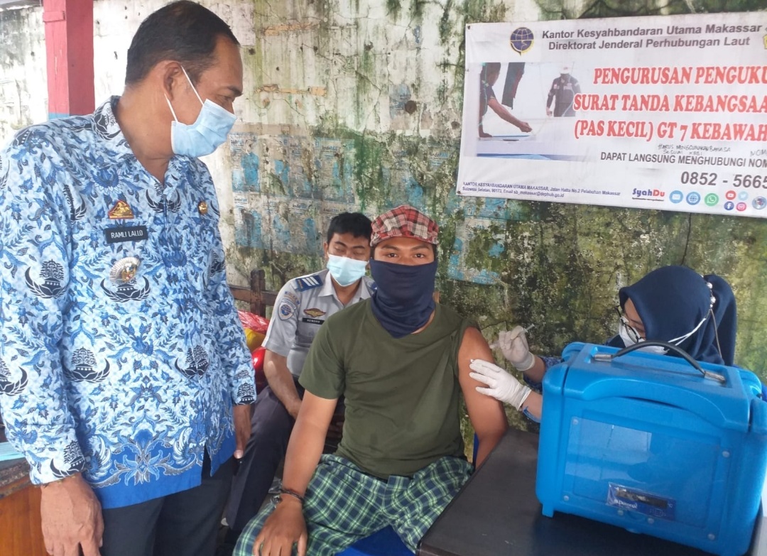 Hal itu dibuktikan dengan menggelar kegiatan Vaksinasi Kecamatan kepulauan Sangkarrang dan sweeping kartu vaksin bagi warga kepulauan sangkarrang di Dermaga Kayu Bangkoa, Senin 17 Januari 2022.