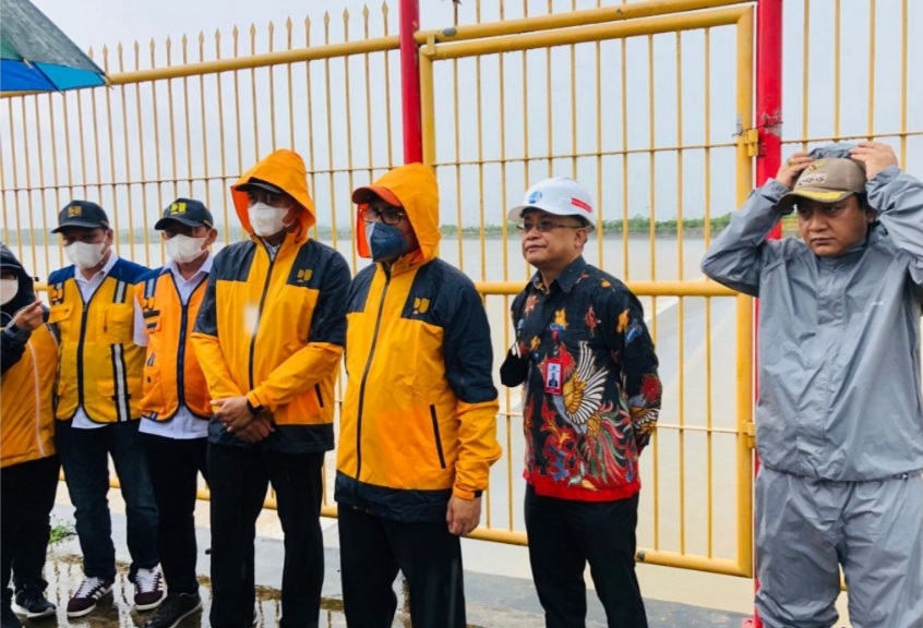 Foto: Wali Kota Makassar, Danny Pomanto didampingi Plt Direksi Perumda Air Minum Makassar, Beni Iskandar dan Camat Manggala Andi Fadli, Meninjau kondisi debit air kolam regulasi nipa – nipa, kamis (20/01/2022).