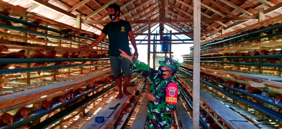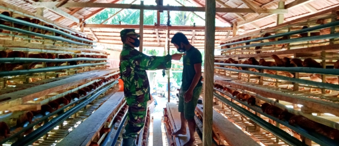 BN Online, Pasangkayu, — Sebagai salah satu upaya meningkatkan kewaspadaan dan keamanan serta ketersediaan pangang dalam lingkup wilayah terotialnya, Babinsa Desa Pangiang Koramil 1427-02/Bambalamotu, Kecamatan Bambalamotu, Kabupaten Pasangkayu, Provinsi Sulbar, Sertu Lukman Tahir, melakukan komunikasi Sosial (Komsos) dengan salah satu tokoh pemuda dan juga pelaku Usaha Kecil Menengah (UKM), Hariono, yang bergerak di bidang peternakan petelur ayam, Jumat (21/01-2022).
