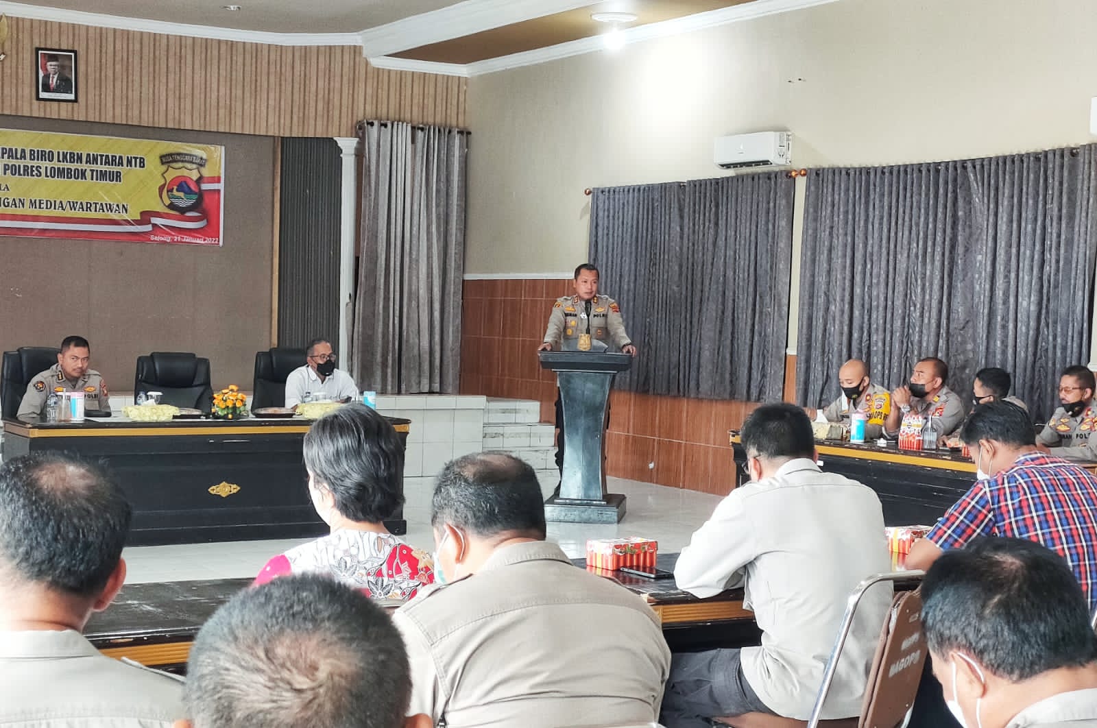 Kabid Humas Polda NTB Kombes Pol Artanto SIK M.Si usai memberikan materi di Mapolres Lombok Timur, Jumat (21/1/2022) mengatakan, kedatangannya dengan Kabiro Antara NTB Riza Fahriza ke Polres Lombok Timur guna memberikan pencerahan kepada Pejabat Utama dan Kapolsek agar lebih meningkatkan hubungannya dengan wartawan atau jurnalis yang ada di Lombok Timur.