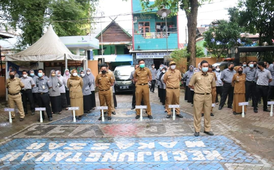 BN Online, Makassar–Sesuai Arahan Camat Ujung Tanah Sekcam Ujung Tanah Amanda Syahwaldi, S.STP,M.M, melaksanakan Apel Pagi dalam rangka mempertahankan kedisiplinan dan kesiapan pegawai dihadiri oleh Para Lurah Kasi/Kasubag, dan pegawai lingkup Pemerintah Kecamatan Ujung Tanah, Bertempat di halaman kantor kecamatan, Senin 24 Januari 2022.