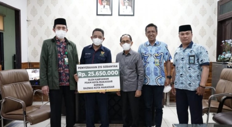 BN Online, Makassar – Perusahaan Daerah Air Minum (PDAM) Kota Makassar menyerahkan zakat, infak dan sedekah kepada Baznas Kota Makassar di kantor PDAM Kota Makassar, Kamis (27/1/2022).