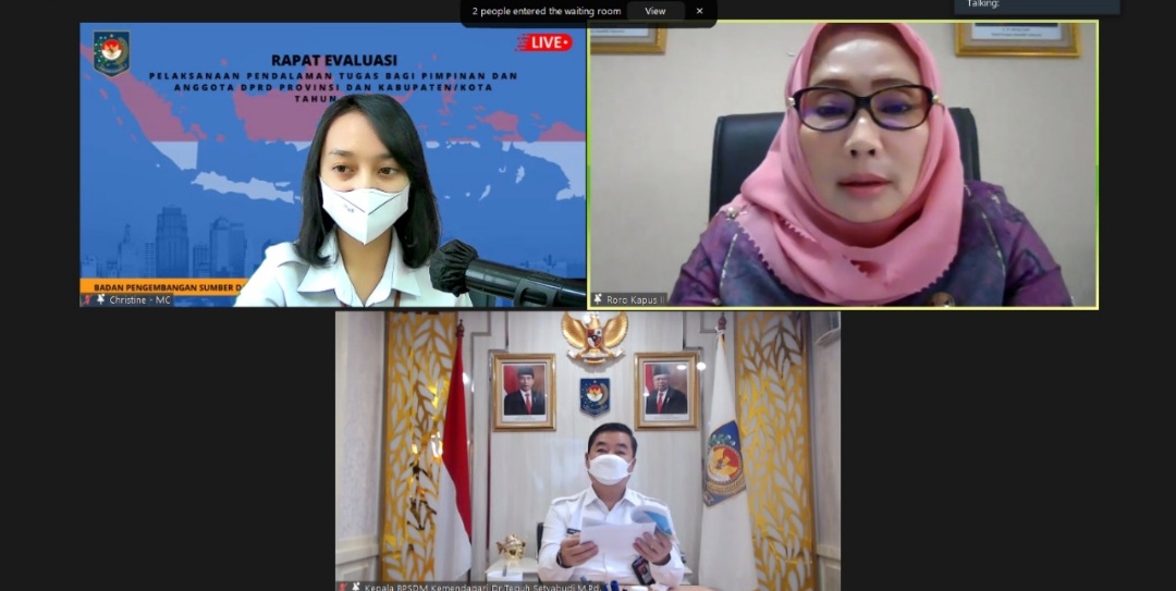 BN Online, Jakarta – Badan Pengembangan Sumber Daya Manusia (BPSDM) Kementerian Dalam Negeri (Kemendagri) menggelar Rapat Evaluasi Pelaksanaan Pendalaman Tugas DPRD Provinsi dan Kabupaten/Kota Tahun 2021, Rabu (9/2/2022). Kegiatan ini berlangsung secara virtual dan diikuti oleh para penyelenggara pendalaman tugas DPRD yang terdiri dari perguruan tinggi, partai politik, dan asosiasi dengan jumlah 125 orang.