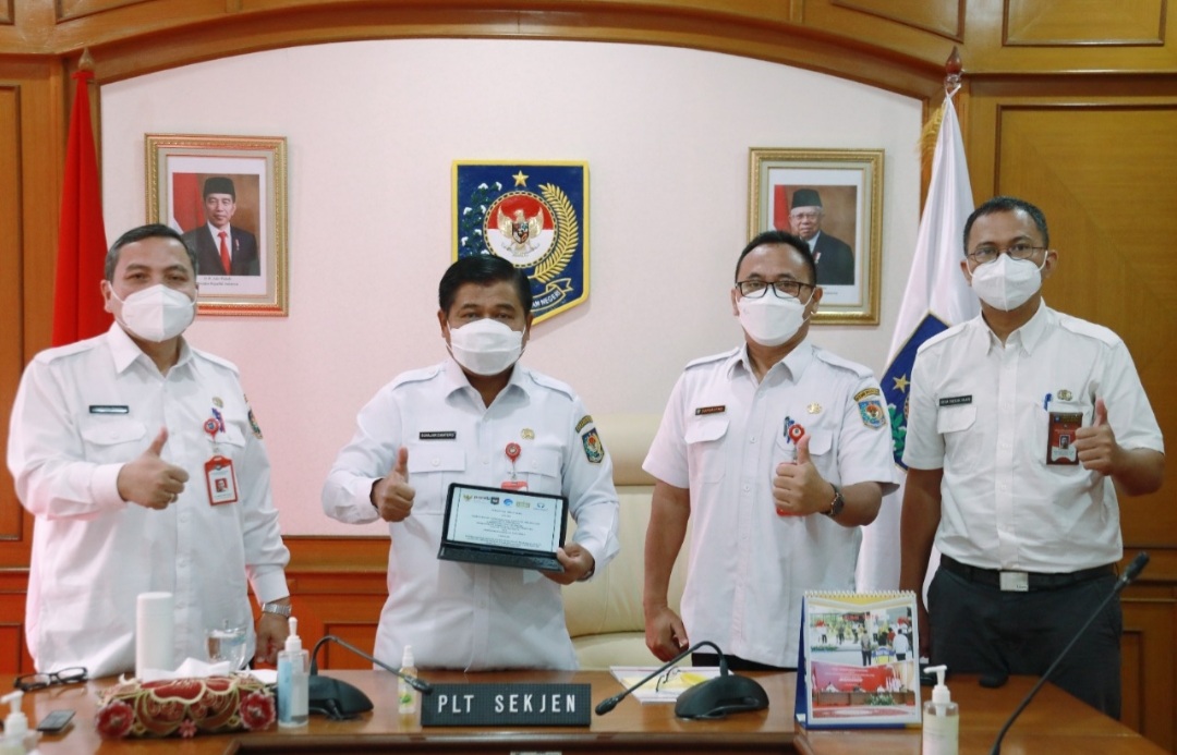 BN Online, Jakarta- Pelaksana Tugas (Plt.) Sekretaris Jenderal (Sekjen) Kementerian Dalam Negeri (Kemendagri) Suhajar Diantoro menandatangani Perjanjian Kerja Sama tentang Sinergi Sistem Pengelolaan Pengaduan Pelayanan Publik menggunakan aplikasi Layanan Aspirasi dan Pengaduan Online Rakyat (SP4N-LAPOR!), Rabu (9/2/2022).