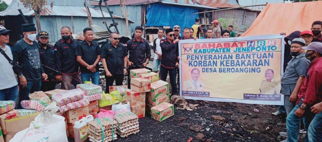 Kordinator kabupaten jeneponto Sahabat HBK Faharuddin Bundu mengungkapkan, bantuan ini merupakan bentuk nyata kepedulian Anggota DPR RI Drs.Hamka, B.kady, terhadap musibah yang dialami warga korban kebakaran didesa Beroanging.