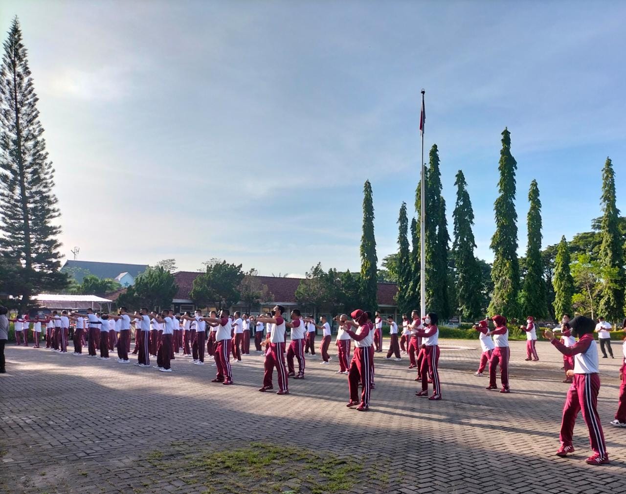 “Mari kita lakukan olahraga pagi ini dengan serius, agar kita tetap dalam keadaan sehat dan tidak mudah sakit serta pada saat olahraga tetap kita terapkan protokol kesehatan”. Ujar Kompol Nuraini.