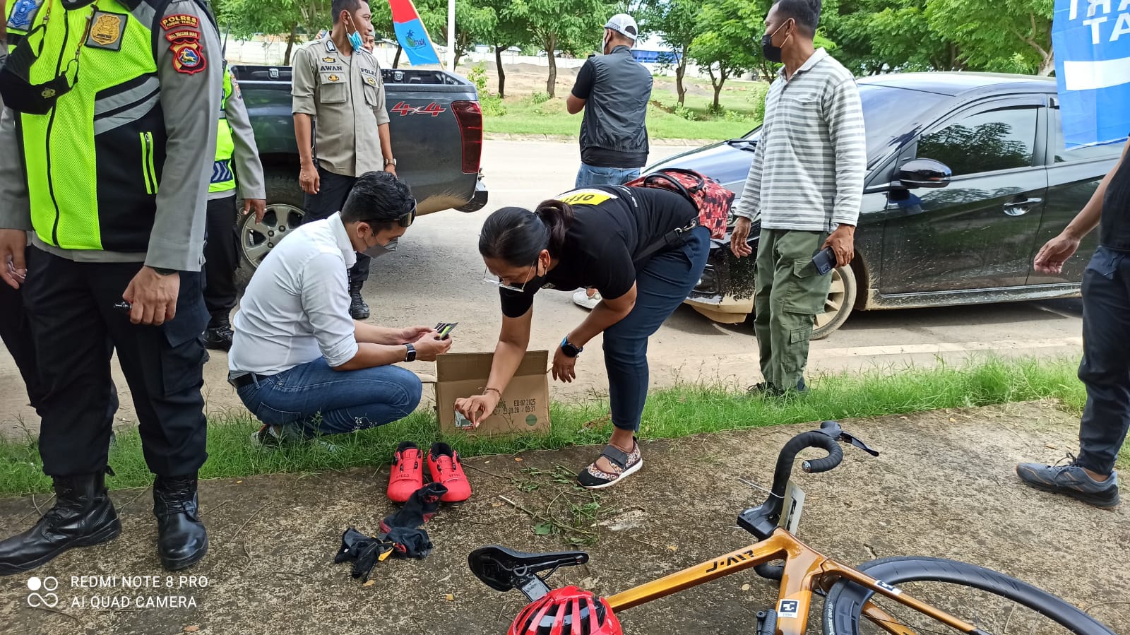 BN Online _ LOMBOK TENGAH, NTB – Kecelakaan pembalap sepeda L-ETAPE tour de France, pada hari Minggu tanggal 20 Februari 2022 sekitar pukul 09.00 Wita, bertempat di Jalan Raya Kuta – Selong Belanak tepatnya di turunan Hotel Artati Desa Mekar Sari Kecamatan Praya Barat Lombok Tengah.