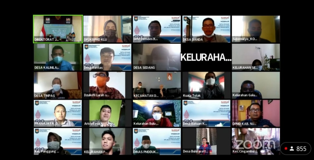 Sebagai informasi, webinar tersebut dihadiri oleh berbagai peserta dari daerah, seperti Dinas Pengendalian Penduduk Keluarga Berencana, Pemberdayaan Masyarakat dan Desa (DP2KBPMD), Kepala Dinas Pemberdayaan Masyarakat dan Pemerintahan Desa (PMPD), Dinas Kependudukan dan Pencatatan Sipil, camat, lurah, dan kepala desa di sejumlah wilayah Indonesia.