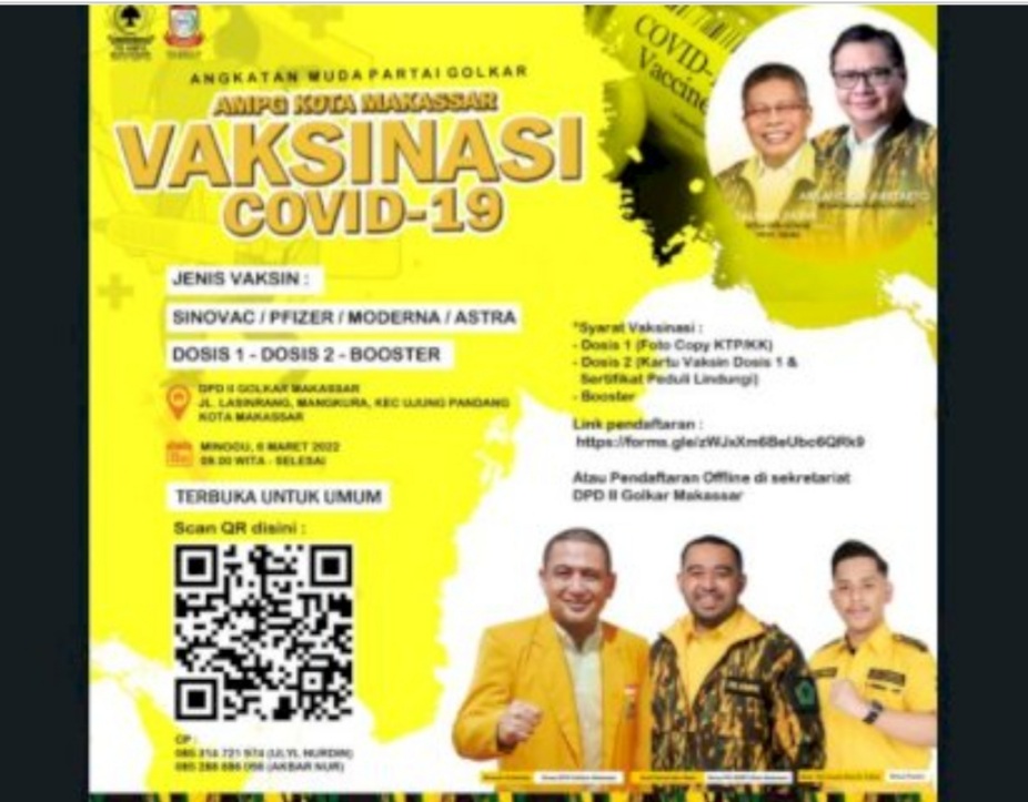 Golkar Makassar menyediakan semua dosis dan jenis vaksin bagi yang sudah maupun yang belum sama sekali.