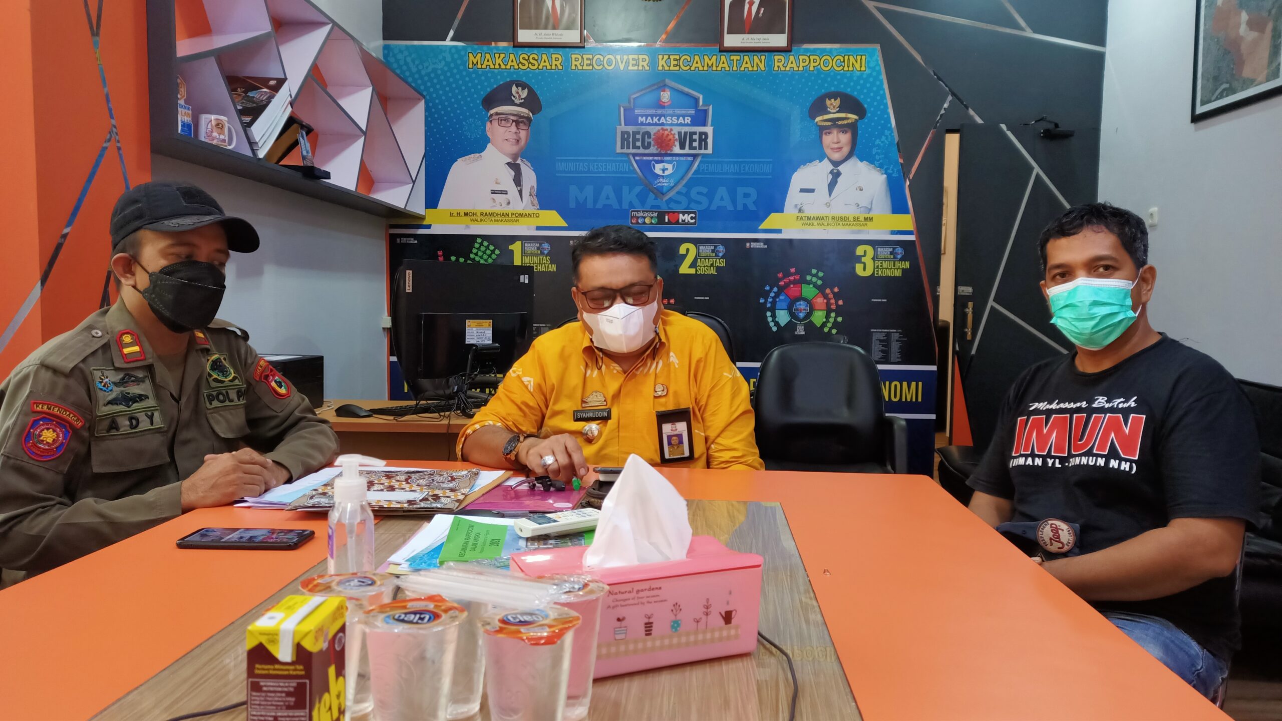 Muh Effendi, Anam dan Dibio mewakili pedagang hadir dikantor kecamatan rappocini guna mengadukan nasibnya yang mana telah dilarang untuk melakukan aktivitas berjualan seperti biasa.
