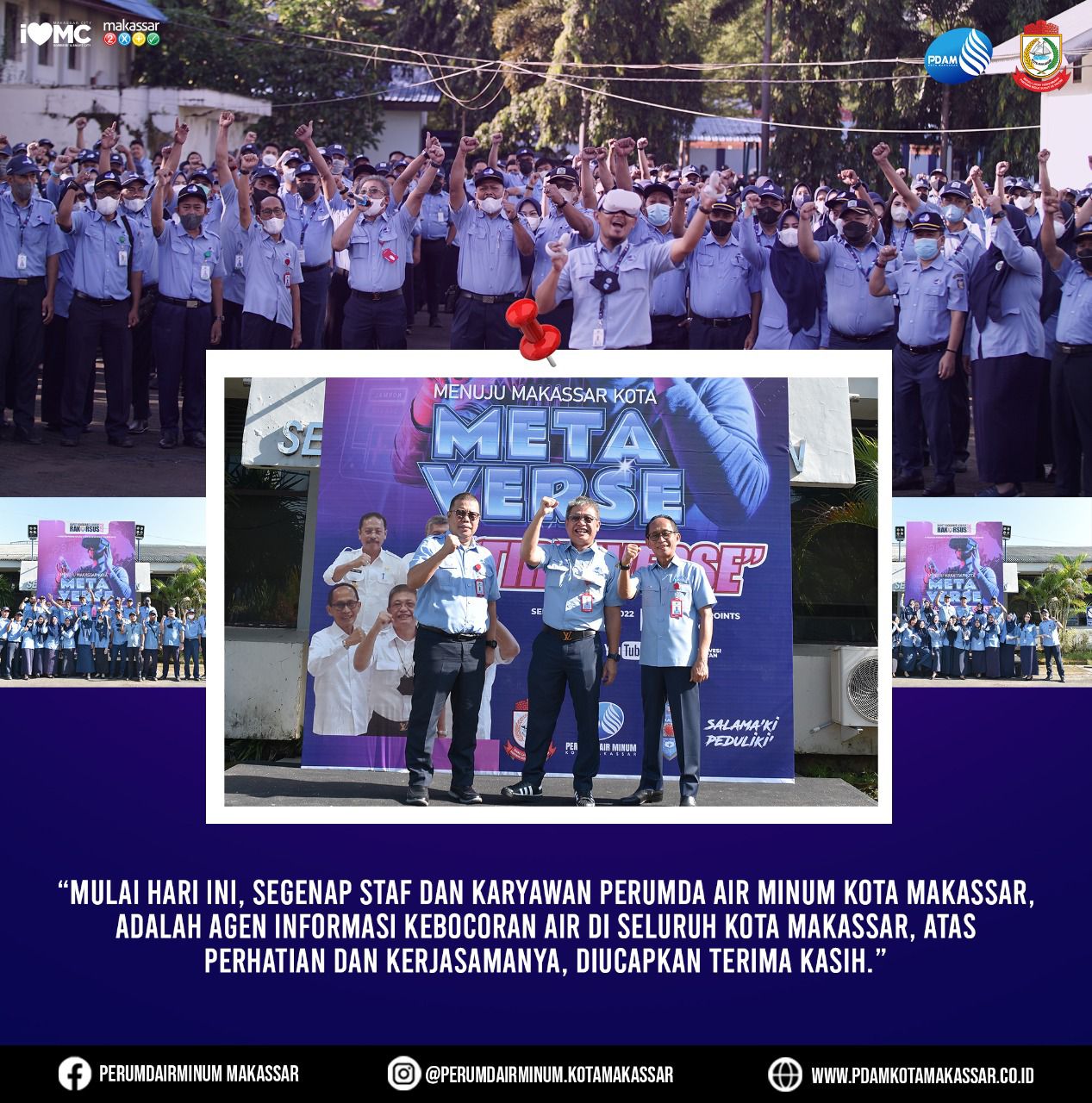 Pejabat Direktur Utama, Beni Iskandar sebagai Pembina Apel memberikan amanah dan perintah langsung kepada seluruh Jajarannya untuk menjadi Agen Informasi Kebocoran Pipa di seluruh Kota Makassar.