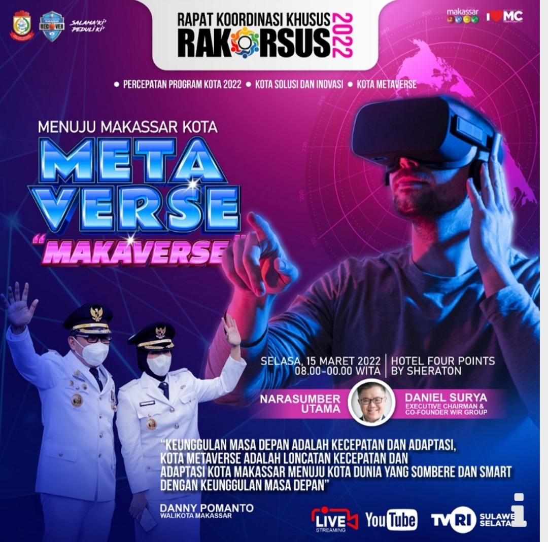 Pengembangan platform Metaverse ini menjadi upaya Pemkot Makassar mengadopsi teknologi digital dengan realitas virtual yang akan memberikan manfaat untuk masyarakat Makassar khususnya dan Indonesia umumnya.
