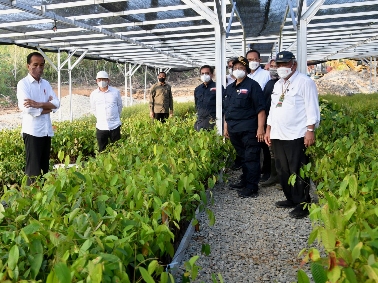 BN Online, Penajam Paser Utara—Presiden Joko Widodo meninjau langsung Persemaian Mentawir yang terletak di Desa Mentawir, Kecamatan Sepaku, Kabupaten Penajam Paser Utara, Provinsi Kalimantan Timur, pada Senin, 14 Maret 2022. Presiden yang tiba di lokasi sekitar pukul 17.15 WITA berkeliling untuk melihat sejumlah fasilitas dan bibit pohon yang ada di lokasi persemaian.