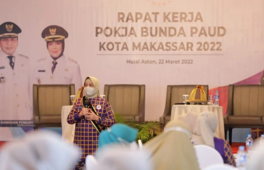 BN Online, Makassar—Raket Kerja Pokja PAUD Kota Makassar 2022, Ketua TP PKK Kota Makassar, yang juga selaku Bunda PAUD Kota Makassar, Indira Jusuf Ismail tekankan upaya pembenahan pendidikan, yang dimulai dari pendidikan dasar dalam hal ini TK/PAUD.