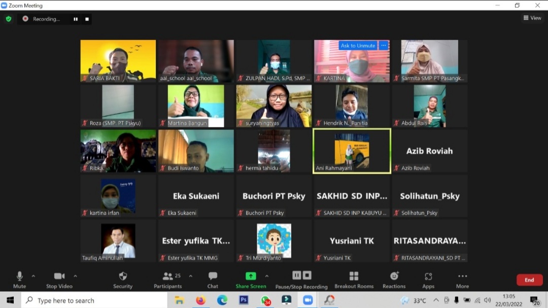 Salah satu anak Perusahaan dari PT Astra Agro Lestari (AAL) Tbk yang bergerak di bidang perkebunan sawit dan beroperasi di Kabupaten Pasangkayu Provinsi Sulbar ini kembali melakukan Kegiatan yang masih dalam bentuk virtual dengan aplikasi Zoom Meeting dan menghadirkan 2 narasumber kegiatan yaitu Intan Nurcahayani (Sosial Engagement Dept. HO) dan Ibu Mumun Editor Buku dengan peserta terdiri dari guru PT Pasangkayu dan PT Mamuang dari tingkat TK, SD hingga SMP.