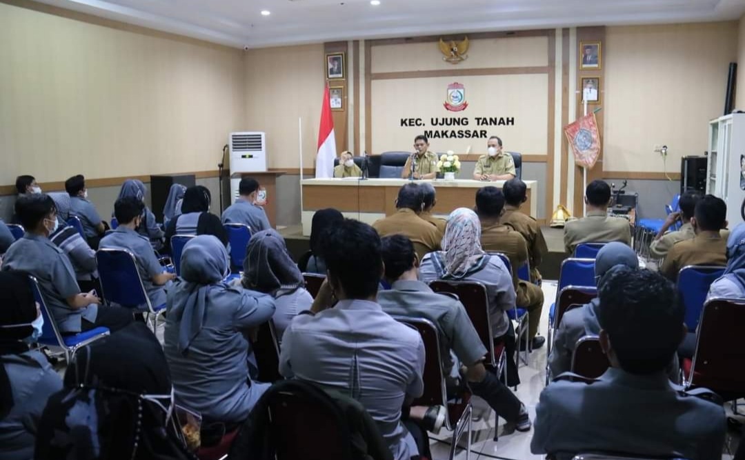 BN Online, Makassar—Camat Ujung Tanah Ibrahim Chaidar Said, S.IP,M.Si Di dampingi Sekcam Ujung Tanah Amanda Syahwaldi, S.STP, M.M, Kasi Kebersihan Abdul Haris menggelar Rapat Koordinasi Bersama Seluruh Staf Kecamatan Dan Kelurahan bertempat Di Aula Kantor Kecamatan Ujung Tanah, Selasa 22 Maret 2022.