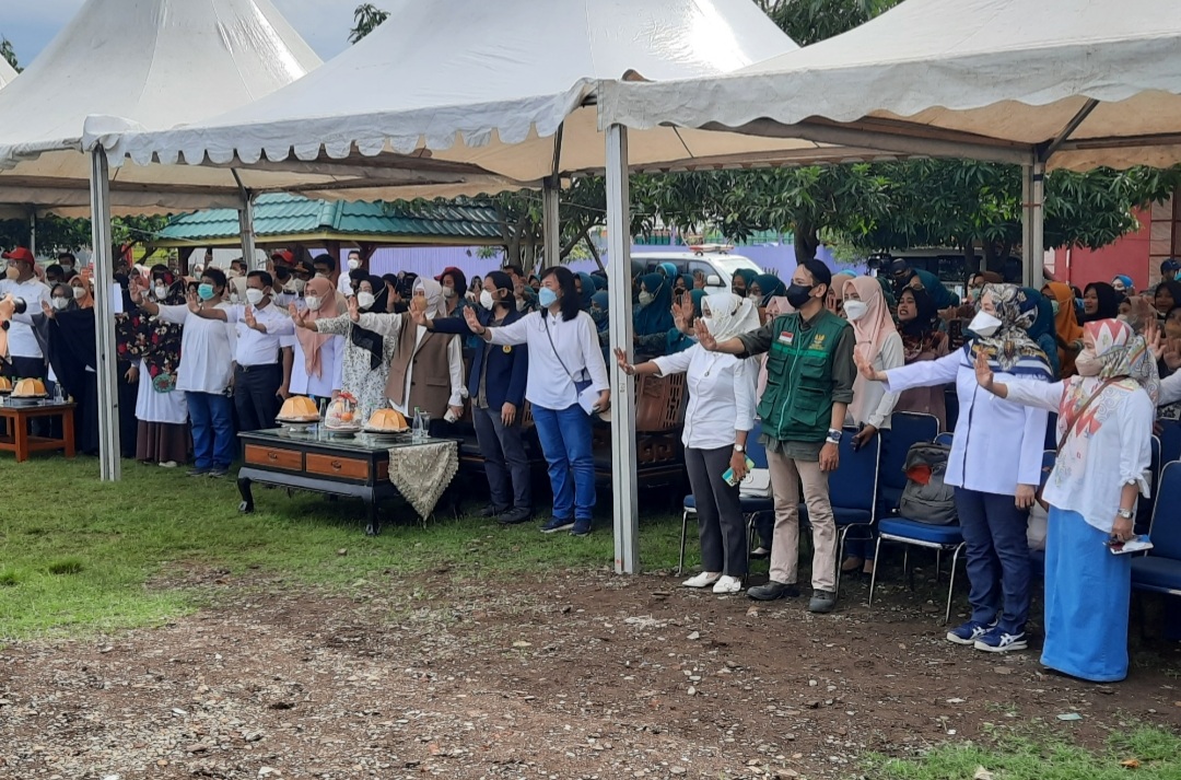 Ketua TPP PKK Kota Makassar dan rombongan disambut Oleh Camat Tallo, Alamsyah para Lurah, KAPUS, kader PKK, kader Posyandu & Masyrakat.